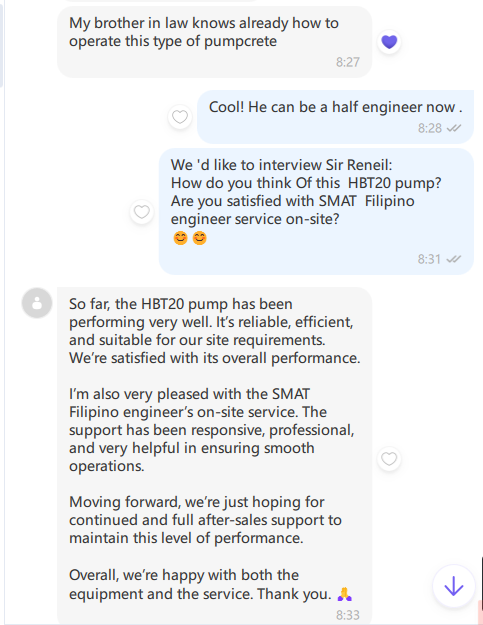 SMAT proposed a decisive shift from a rental model to owned equipment. The supplied HBT-20 concrete pump offered a robust, flexible, and economical alternative. Our commitment extended beyond the sale:
