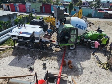 Advantage: Ensures concrete mix proportions and uniformity. Continuous material supply from mixer trucks and continuous pumping from trailer pumps.