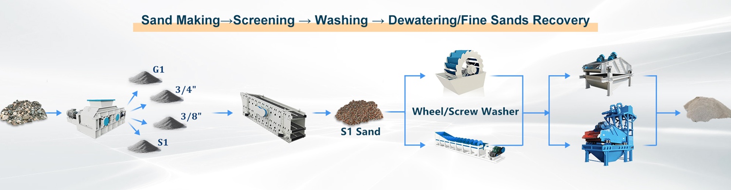 | High-End (stationary) | 200-400 t/h | Feeder + Roller Crusher + Multi-Layer High-Frequency Screen + Screw Washer + Fine Sand Recovery + Dewatering Screen | Large quarry, aggregate production base |
